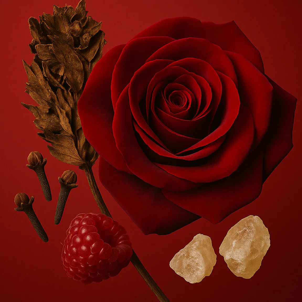Zimt, Rose, schwarze Johannisbeere, Himbeere, Nelke