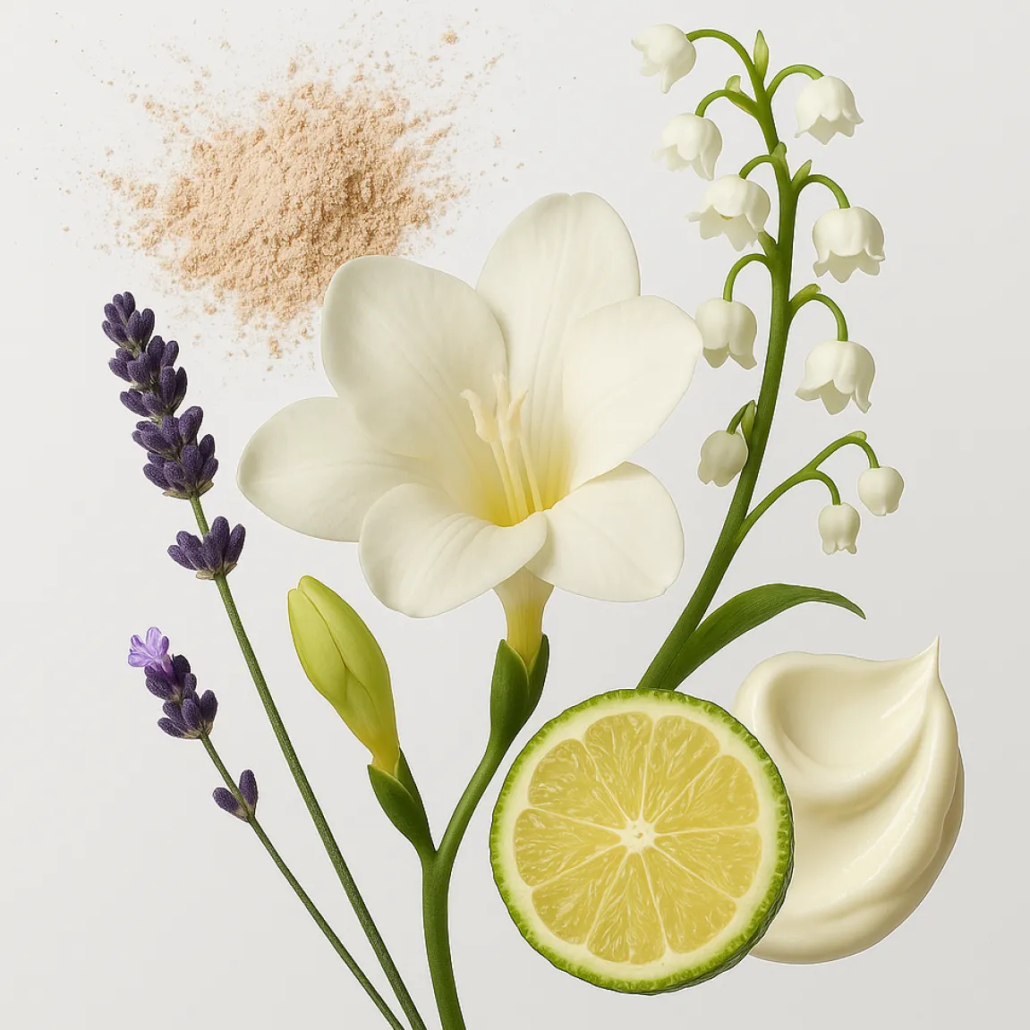 Inhaltsstoffe: (R)-p-mentha-1,8-dien, geraniol, linalool, linalylacetat, citronellol, benzylsalicylat, 3-methyl-4-(2,6,6-trimethyl-2-cyclohexen-1-yl)-3-buten-2-on, piperonal, α-methyl-1,3-benzodioxol-5-propionaldehyd, geranylacetat, pin-2(10)-en, citral, 3-methylcyclopentadecenone, alpha-pinen, 1-isopropyl-4-methylenebicyclo[3.1.0]hexane, 3- p-cumenyl-2-methylpropionaldehyd, kumarin, isoeugenol