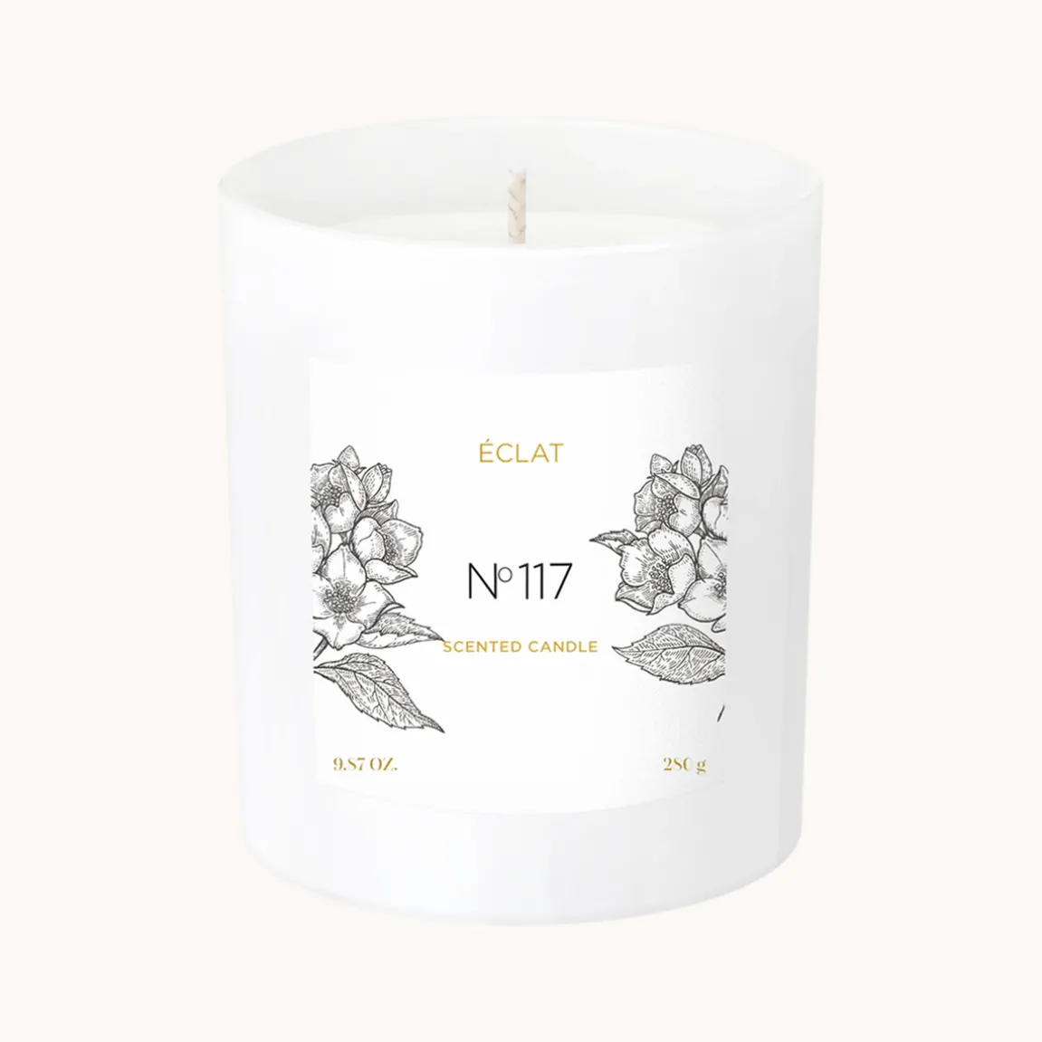 Der mystische Damen Bestseller ÉCLAT N° 117 betört mit seinen großzügigen und üppigen Noten auch als Duftkerze die Sinne. Wie ein sonniger Talisman verbreitet die parfümierte Kerze geheimnisvolle und beruhigende Akkorde im Raum. Der strahlende Duft aus Ambra, Jasmin-Sambac und Cashmeran verleiht deinem Zuhause eine elegante und wohltuende Aura. Erlebe deinen Lieblingsduftzwilling auf eine ganz neue Art.