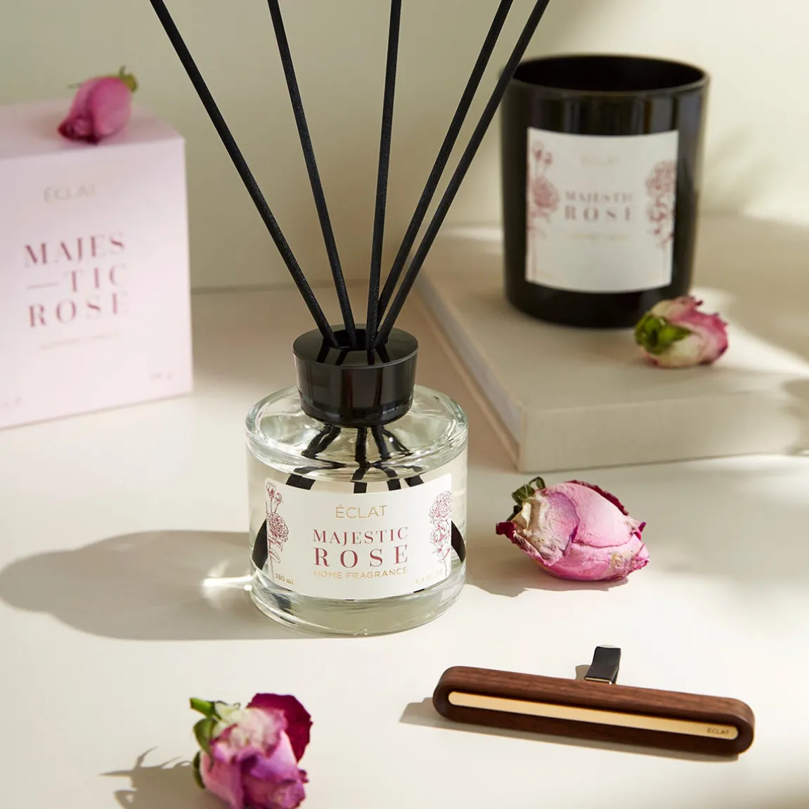 Erlebe beim Anzünden dieser duftenden Kerze ein Gefühl von Glück, Freude und Zufriedenheit. Im Mittelpunkt der Komposition steht die Königin aller Blumen: Die majestätische Rose. Sie erfüllt den Raum mit dem zart süßen Rosenduft und sorgt für ein angenehmes und erfrischendes Klima. Begleitet wird der rosige Duft der parfümierten Kerze durch die anziehende Wärme von Moschus und ambrierten Hölzern sowie durch die florale Frische von Meeres-Noten und Frühlingsblumen.